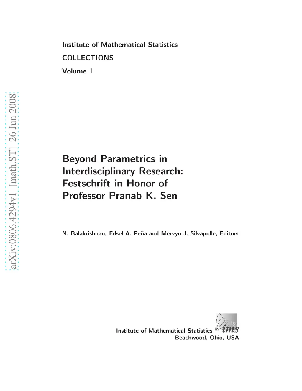 Pranab K. Sen has contributed extensively to many areas of Statistics including order statistics, nonparametrics, robust inference, sequential methods, asymptotics, biostatistics, clinical trials, bioenvironmental studies and bioinformatics. His long list of over 600 publications and 22 books and volumes along with numerous citations during the past 5 decades bear testimony to his work. All three of us have had the good fortune of being associated with him in different capacities. He has given professional and personal advice on many occasions to all of us, and we feel that our lives have certainly been enriched by our association with him. He has been over the years a friend, philosopher and a guide to us, and still continues to be one! While parametric statistical inference remains ever so popular, semi-parametric, Bayesian and nonparametric inferential methods have attracted great attention from numerous applied scientists because of their weaker assumptions, which make them naturally robust and so more appropriate in real-life applications. This clearly signals for ``beyond parametrics'' approaches which include nonparametrics, semi-parametrics, Bayes methods and many others. Motivated by this feature, and his drive in the ``beyond parametrics'' area, we thought that it will be only appropriate for a volume in honor of Pranab Kumar Sen to focus on this aspect of statistical inference and its applications. With this in mind, we have put together this volume in order to (i) review some of the recent developments in this direction, (ii) focus on some new methodologies and highlight their applications, and (iii) suggest some interesting open problems and possible new directions for further research.