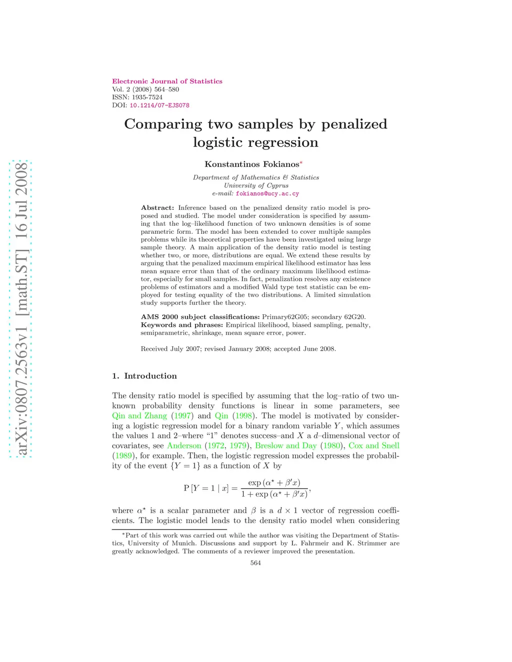 Comparing two samples by penalized logistic regression