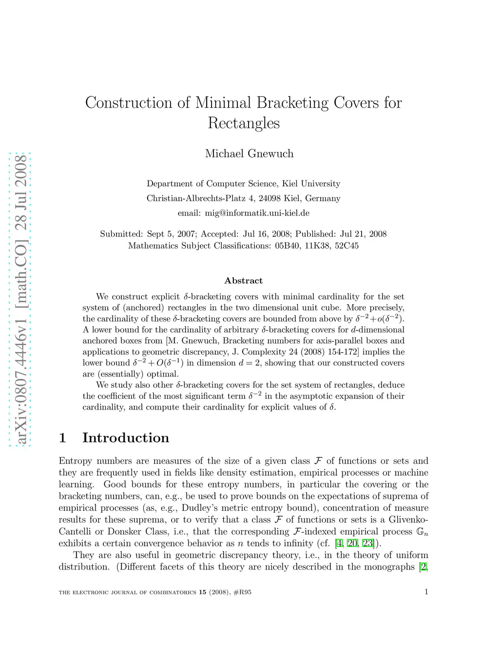 Construction of Minimal Bracketing Covers for Rectangles