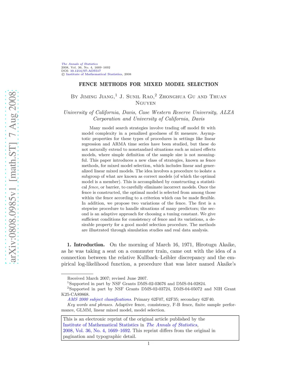 Fence methods for mixed model selection