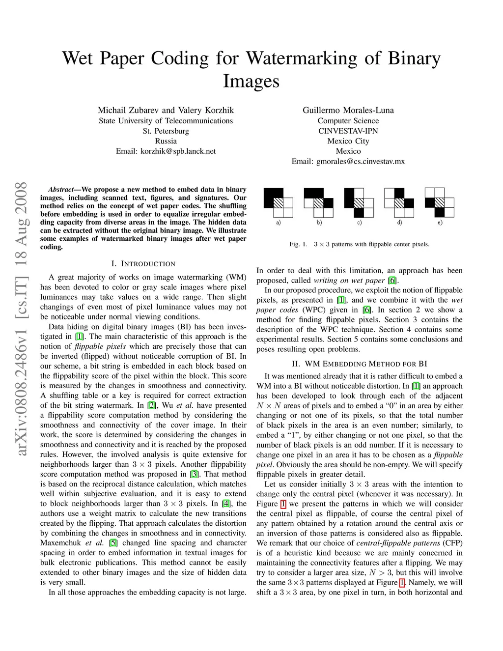 We propose a new method to embed data in binary images, including scanned text, figures, and signatures. Our method relies on the concept of wet paper codes. The shuffling before embedding is used in order to equalize irregular embedding capacity from diverse areas in the image. The hidden data can be extracted without the original binary image. We illustrate some examples of watermarked binary images after wet paper coding.