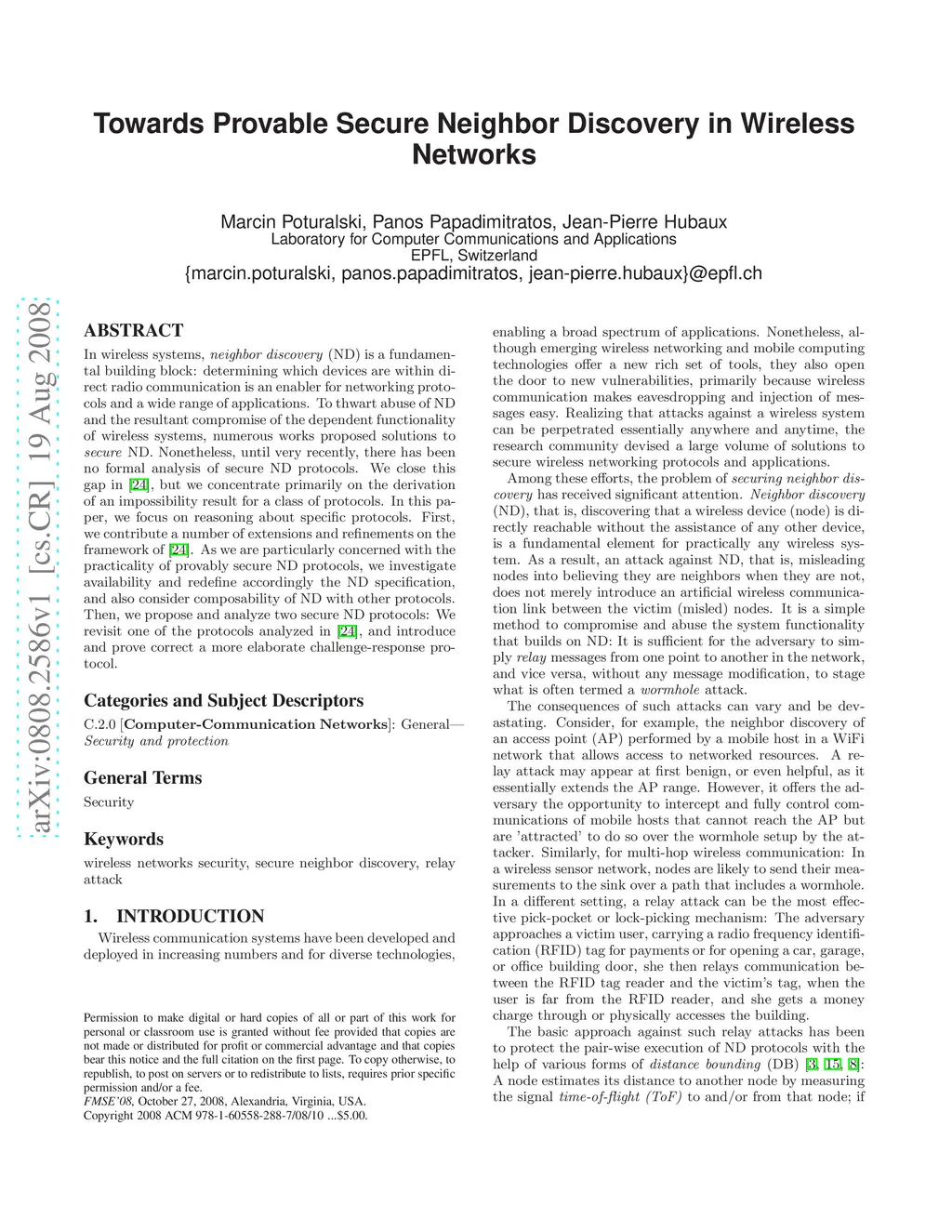 Towards Provable Secure Neighbor Discovery in Wireless Networks