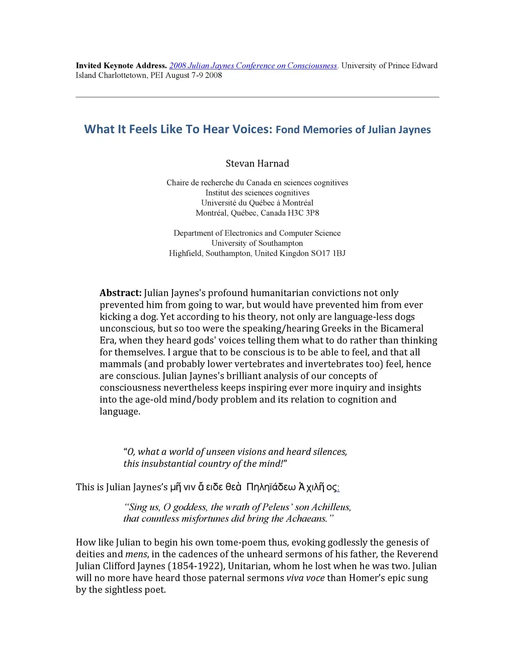 What It Feels Like To Hear Voices: Fond Memories of Julian Jaynes