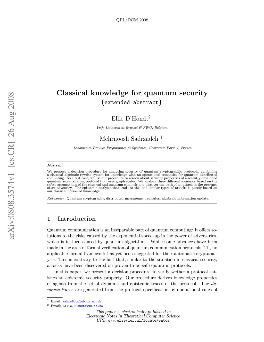 We propose a decision procedure for analysing security of quantum cryptographic protocols, combining a classical algebraic rewrite system for knowledge with an operational semantics for quantum distributed computing. As a test case, we use our procedure to reason about security properties of a recently developed quantum secret sharing protocol that uses graph states. We analyze three different scenarios based on the safety assumptions of the classical and quantum channels and discover the path of an attack in the presence of an adversary. The epistemic analysis that leads to this and similar types of attacks is purely based on our classical notion of knowledge.