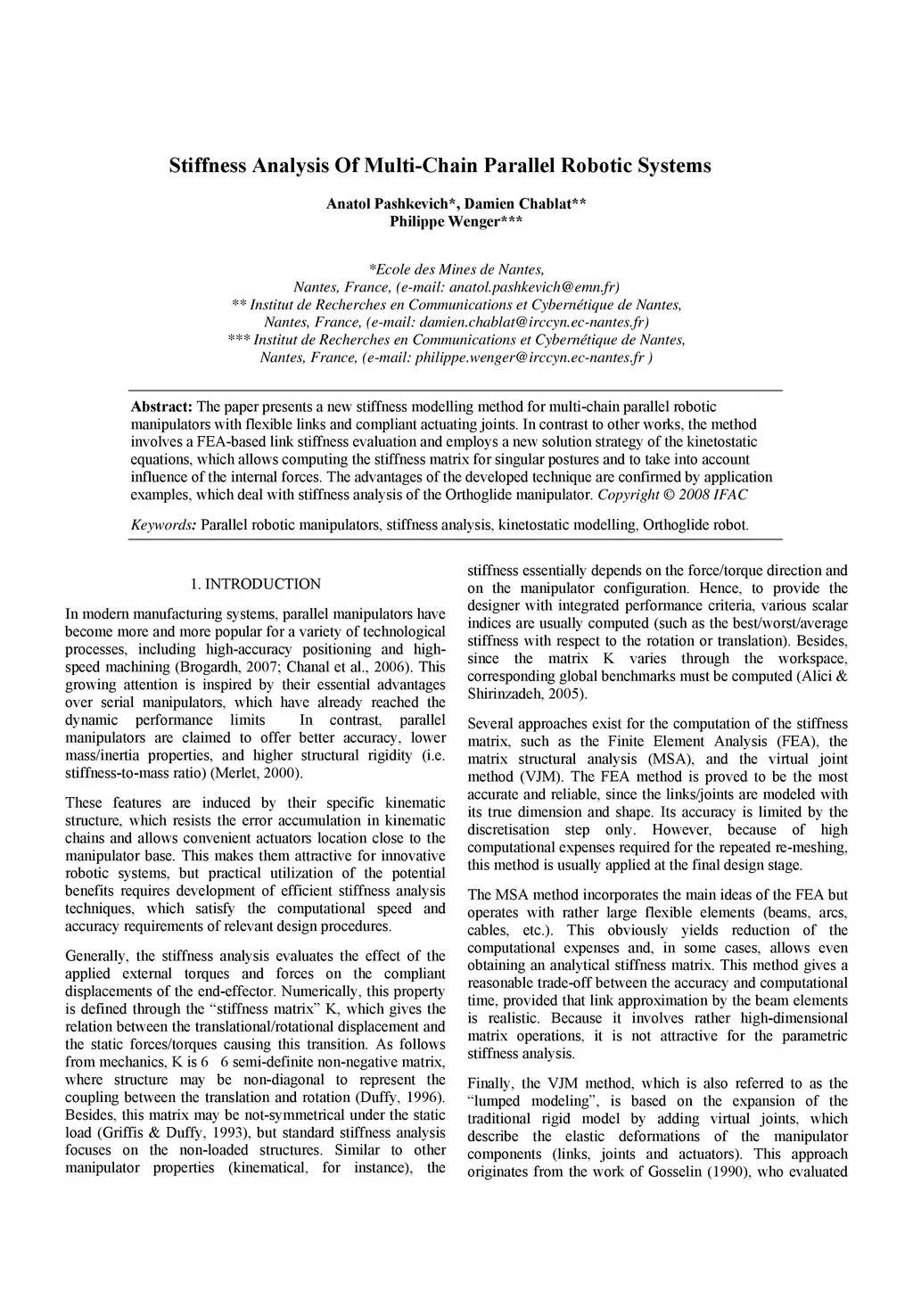 Stiffness Analysis Of Multi-Chain Parallel Robotic Systems