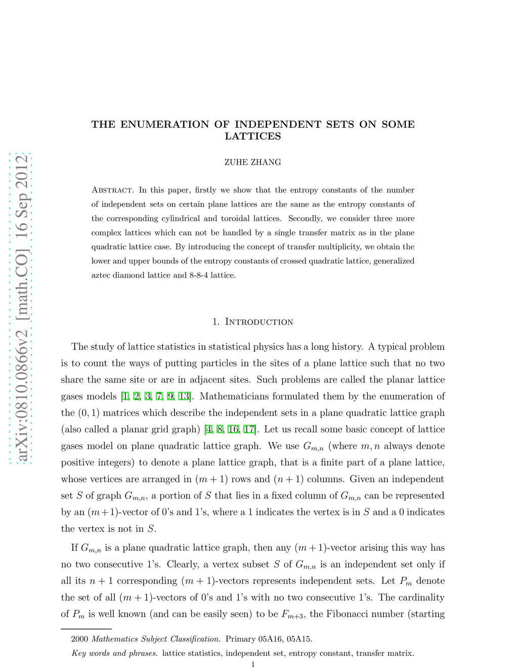 The enumeration of independent sets on some lattices