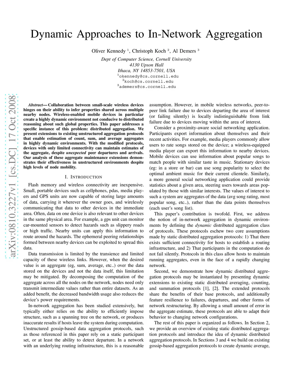 Collaboration between small-scale wireless devices hinges on their ability to infer properties shared across multiple nearby nodes. Wireless-enabled mobile devices in particular create a highly dynamic environment not conducive to distributed reasoning about such global properties. This paper addresses a specific instance of this problem: distributed aggregation. We present extensions to existing unstructured aggregation protocols that enable estimation of count, sum, and average aggregates in highly dynamic environments. With the modified protocols, devices with only limited connectivity can maintain estimates of the aggregate, despite \textit{unexpected} peer departures and arrivals. Our analysis of these aggregate maintenance extensions demonstrates their effectiveness in unstructured environments despite high levels of node mobility.