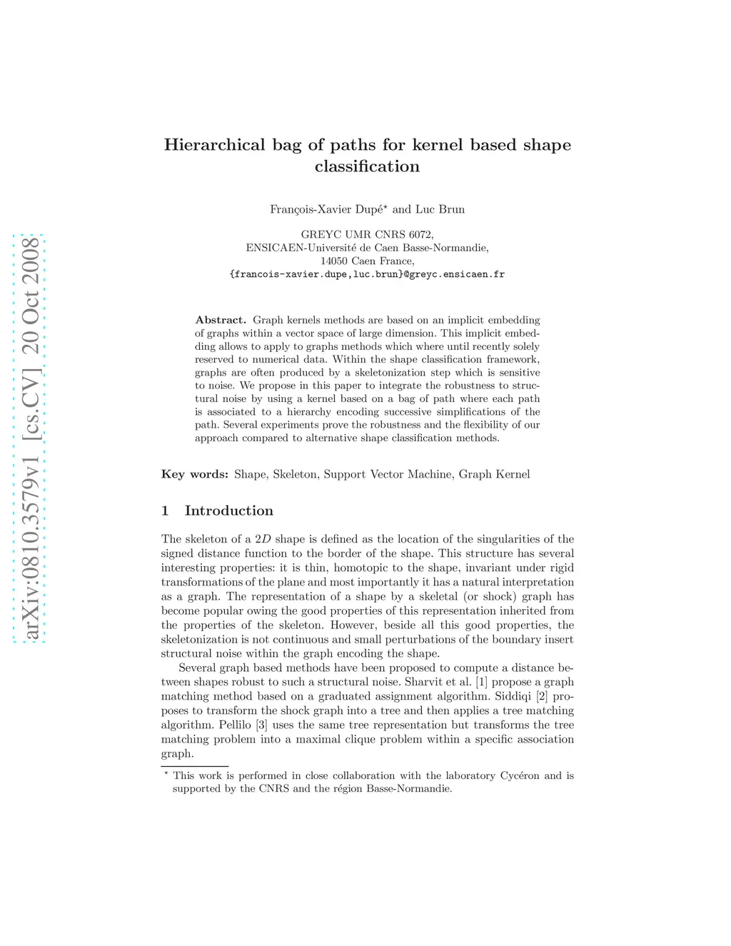 Hierarchical Bag of Paths for Kernel Based Shape Classification