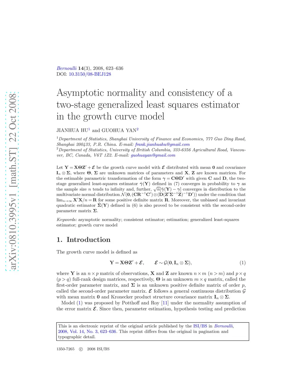Let Y=X\boldsΘZ′+\boldsE be