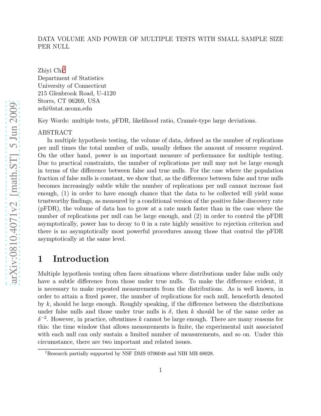 In multiple hypothesis testing, the volume of data, defined as the number of replications per null times the total number of nulls, usually defines the amount of resource required. On the other hand, power is an important measure of performance for multiple testing. Due to practical constraints, the number of replications per null may not be large enough in terms of the difference between false and true nulls. For the case where the population fraction of false nulls is constant, we show that, as the difference between false and true nulls becomes increasingly subtle while the number of replications per null cannot increase fast enough, (1) in order to have enough chance that the data to be collected will yield some trustworthy findings, as measured by a conditional version of the positive false discovery rate (pFDR), the volume of data has to grow at a rate much faster than in the case where the number of replications per null can be large enough, and (2) in order to control the pFDR asymptotically, power has to decay to 0 in a rate highly sensitive to rejection criterion and there is no asymptotically most powerful procedures among those that control the pFDR asymptotically at the same level.