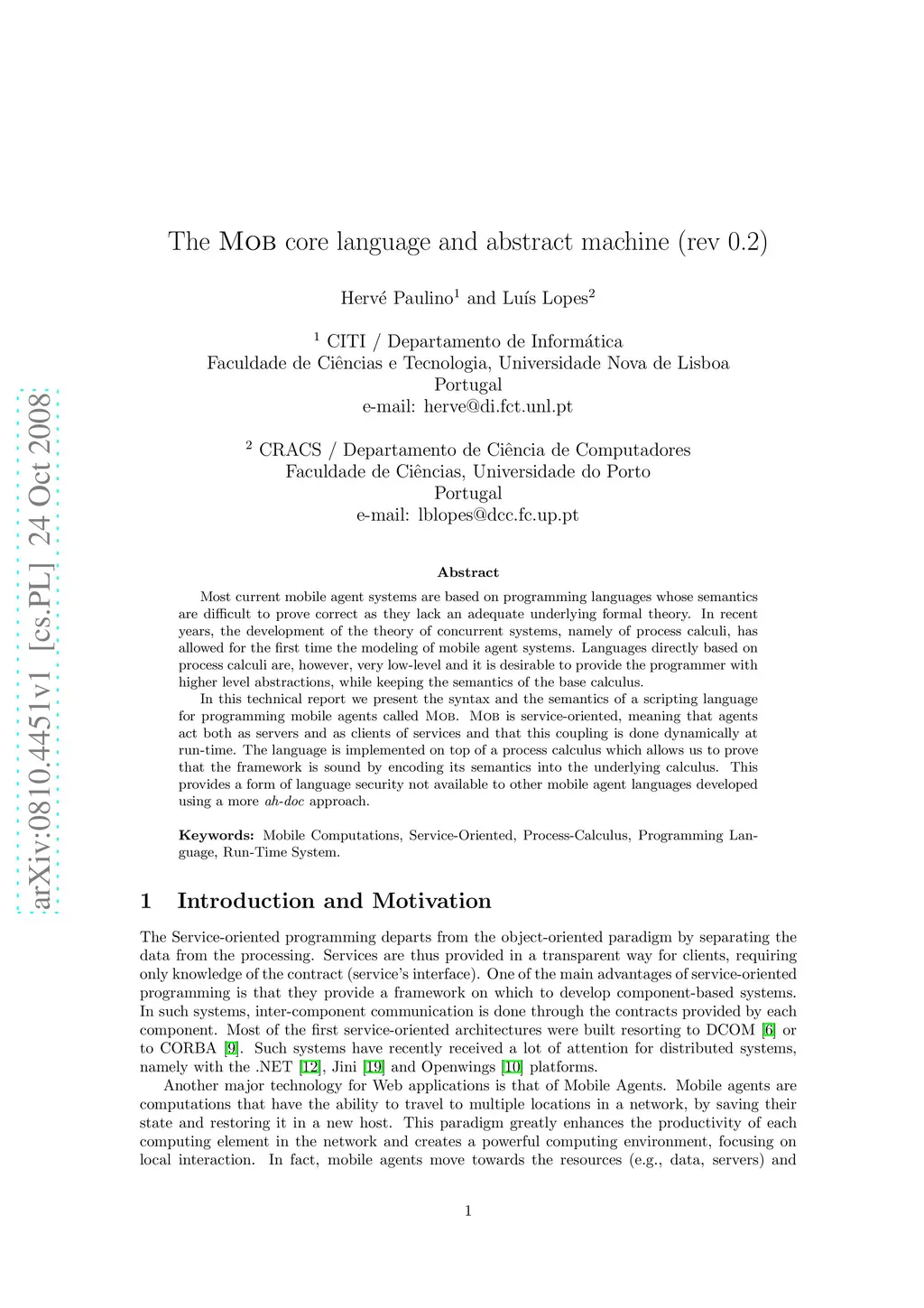 Most current mobile agent systems are based on programming languages whose semantics are difficult to prove correct as they lack an adequate underlying formal theory. In recent years, the development of the theory of concurrent systems, namely of process calculi, has allowed for the first time the modeling of mobile agent systems.Languages directly based on process calculi are, however, very low-level and it is desirable to provide the programmer with higher level abstractions, while keeping the semantics of the base calculus. In this technical report we present the syntax and the semantics of a scripting language for programming mobile agents called Mob. We describe the language's syntax and semantics. Mob is service-oriented, meaning that agents act both as servers and as clients of services and that this coupling is done dynamically at run-time. The language is implemented on top of a process calculus which allows us to prove that the framework is sound by encoding its semantics into the underlying calculus. This provides a form of language security not available to other mobile agent languages developed using a more ah-doc approach.