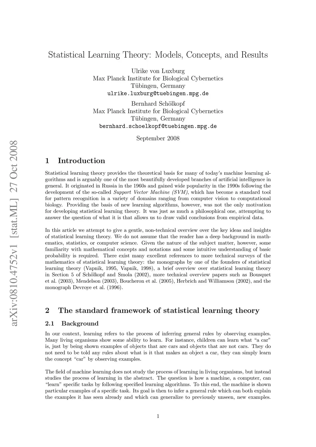 Statistical learning theory provides the theoretical basis for many of today's machine learning algorithms. In this article we attempt to give a gentle, non-technical overview over the key ideas and insights of statistical learning theory. We target at a broad audience, not necessarily machine learning researchers. This paper can serve as a starting point for people who want to get an overview on the field before diving into technical details.