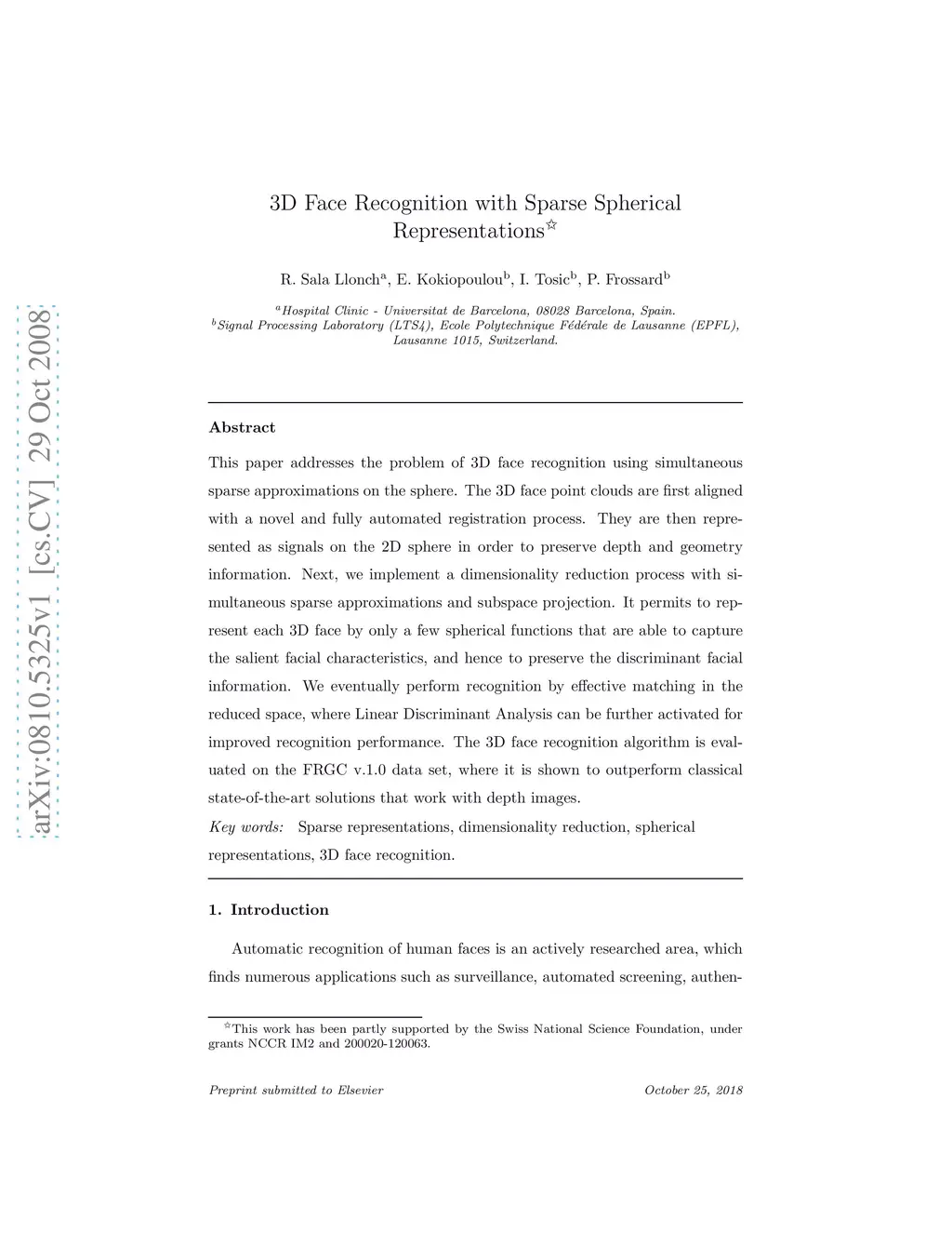 3D Face Recognition with Sparse Spherical Representations