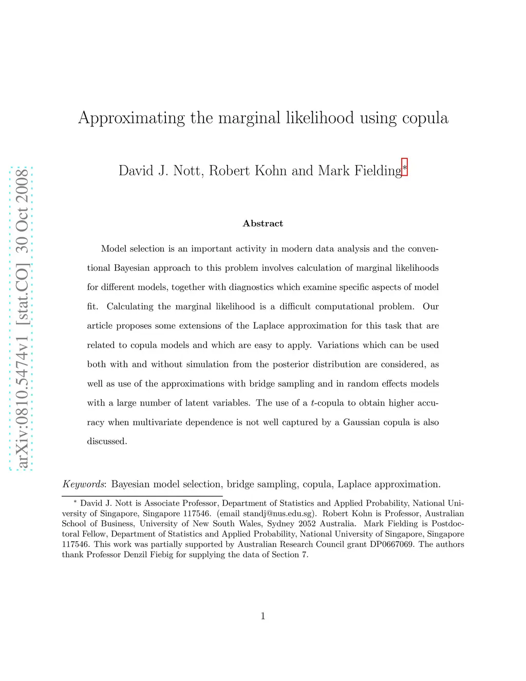 Approximating the marginal likelihood using copula