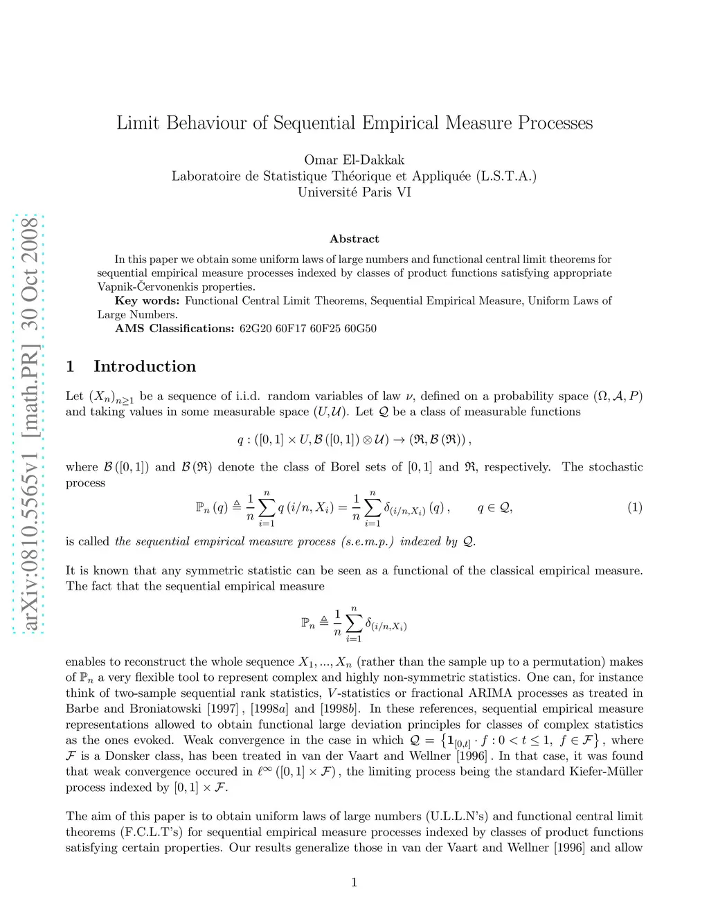 In this paper, we obtain some uniform laws of large numbers and functional central limit theorems for sequential empirical measure processes indexed by classes of product functions satisfying appropriate Vapnik-Chervonenkis properties.