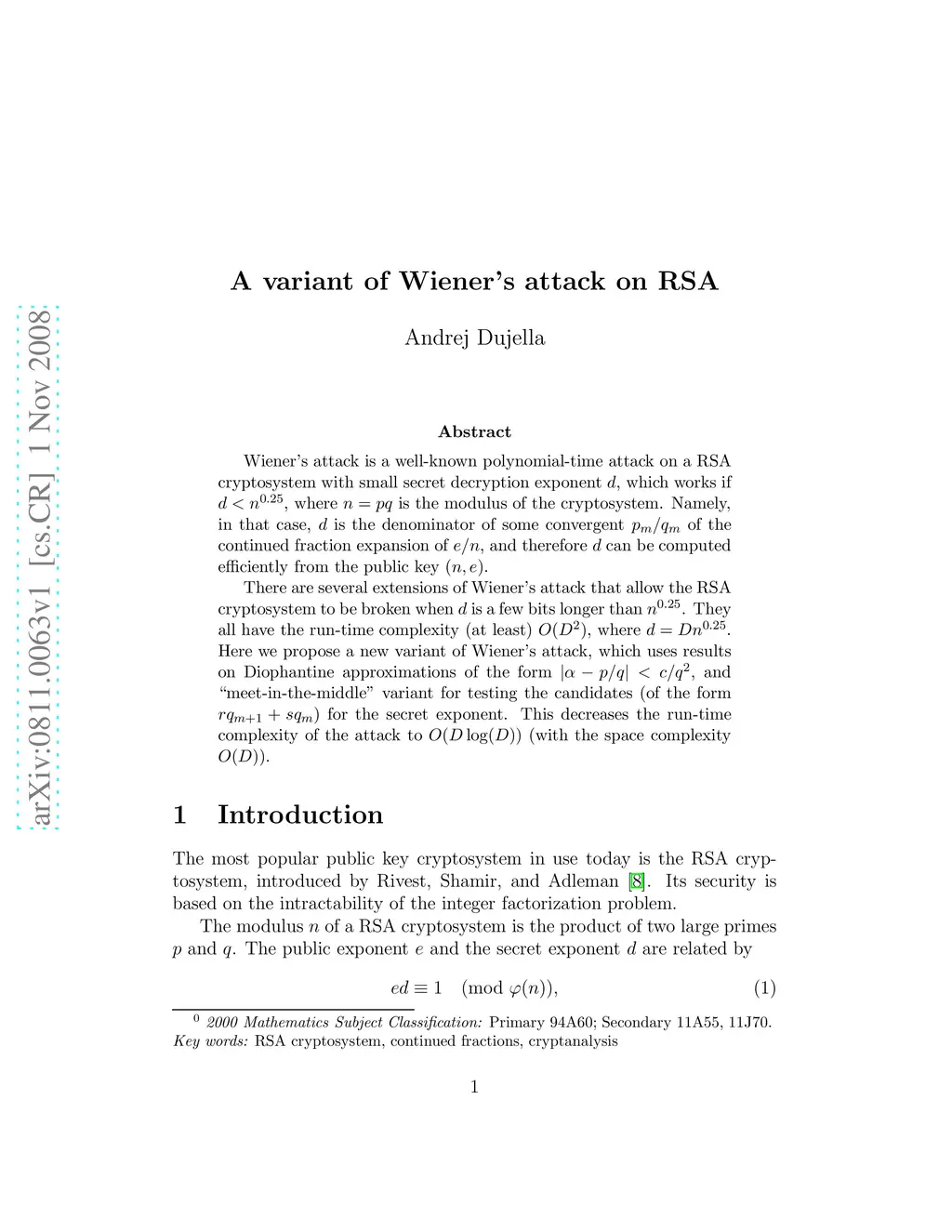 Wiener's attack is a well-known polynomial-time attack on a RSA cryptosystem with small secret decryption exponent d, which works if d<n^{0.25}, where n=pq is the modulus of the cryptosystem. Namely, in that case, d is the denominator of some convergent p_m/q_m of the continued fraction expansion of e/n, and therefore d can be computed efficiently from the public key (n,e). There are several extensions of Wiener's attack that allow the RSA cryptosystem to be broken when d is a few bits longer than n^{0.25}. They all have the run-time complexity (at least) O(D^2), where d=Dn^{0.25}. Here we propose a new variant of Wiener's attack, which uses results on Diophantine approximations of the form |\alpha - p/q| < c/q^2, and "meet-in-the-middle" variant for testing the candidates (of the form rq_{m+1} + sq_m) for the secret exponent. This decreases the run-time complexity of the attack to O(D log(D)) (with the space complexity O(D)).