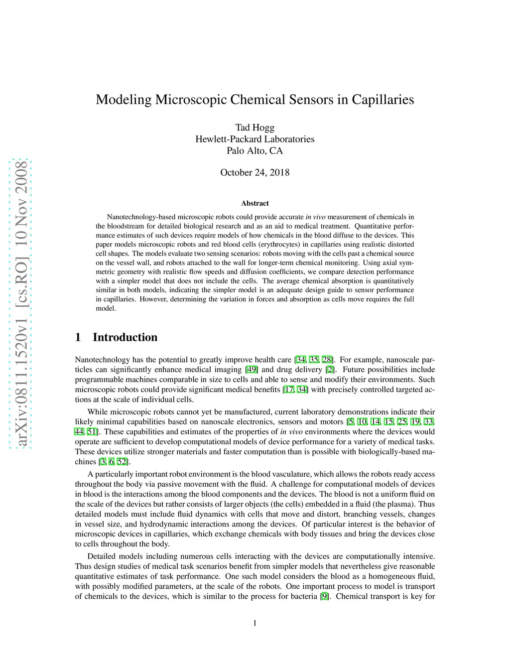 Modeling Microscopic Chemical Sensors in Capillaries