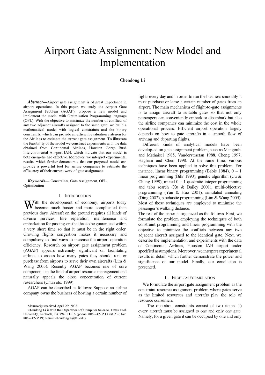 Airport Gate Assignment: New Model and Implementation