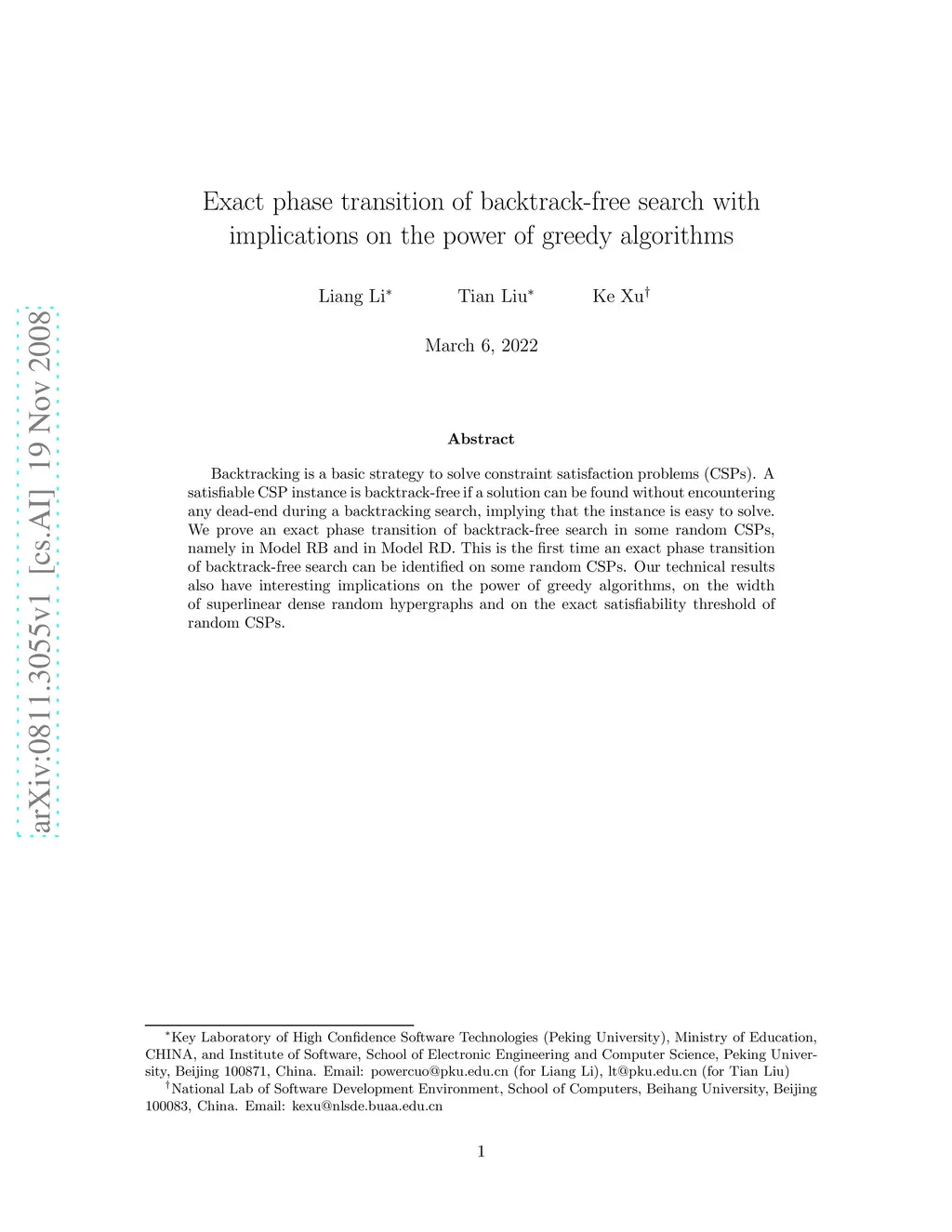 Backtracking is a basic strategy to solve constraint satisfaction problems (CSPs). A satisfiable CSP instance is backtrack-free if a solution can be found without encountering any dead-end during a backtracking search, implying that the instance is easy to solve. We prove an exact phase transition of backtrack-free search in some random CSPs, namely in Model RB and in Model RD. This is the first time an exact phase transition of backtrack-free search can be identified on some random CSPs. Our technical results also have interesting implications on the power of greedy algorithms, on the width of random hypergraphs and on the exact satisfiability threshold of random CSPs.
