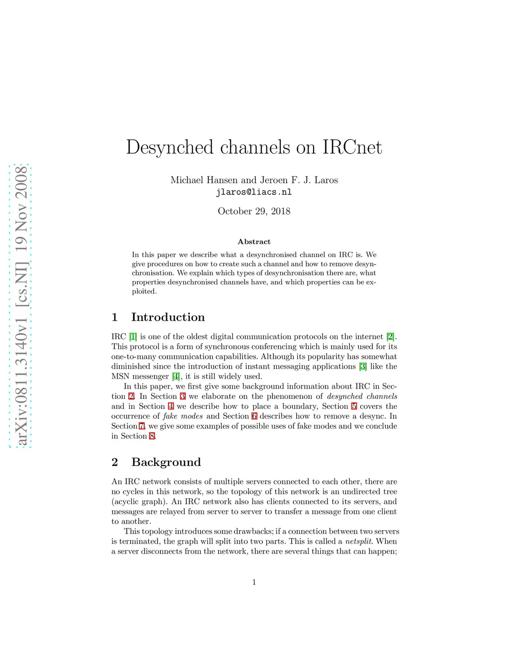 In this paper we describe what a desynchronised channel on IRC is. We give procedures on how to create such a channel and how to remove desynchronisation. We explain which types of desynchronisation there are, what properties desynchronised channels have, and which properties can be exploited.