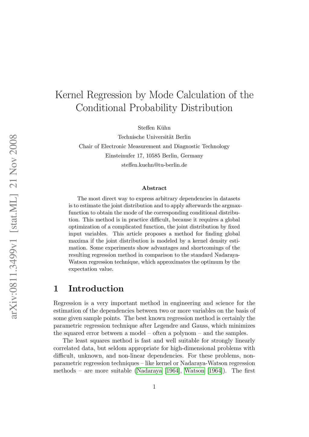 Kernel Regression by Mode Calculation of the Conditional Probability