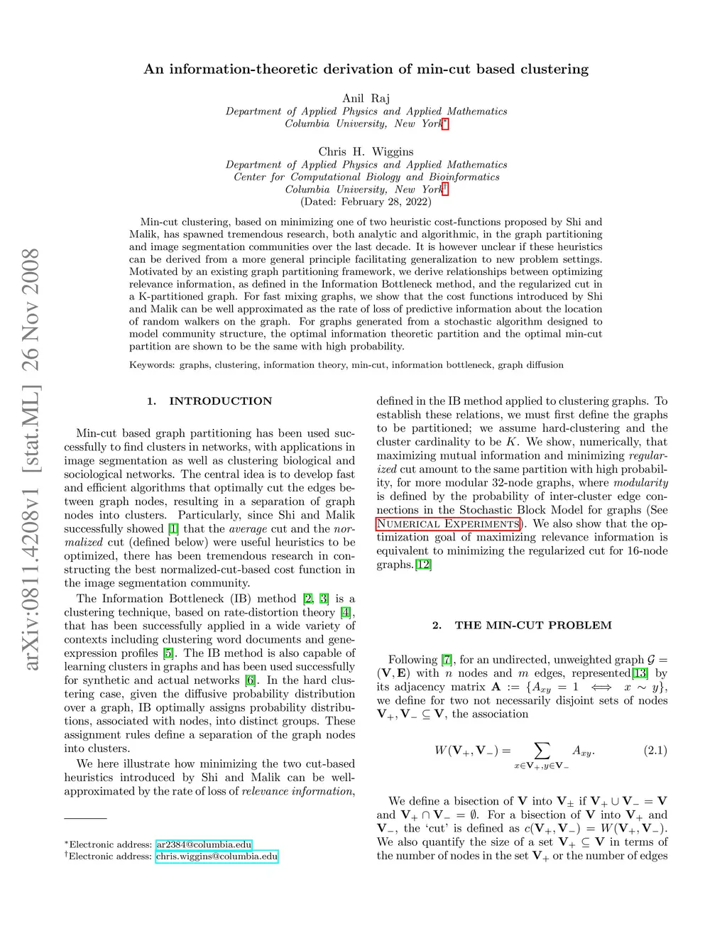 An information-theoretic derivation of min-cut based clustering