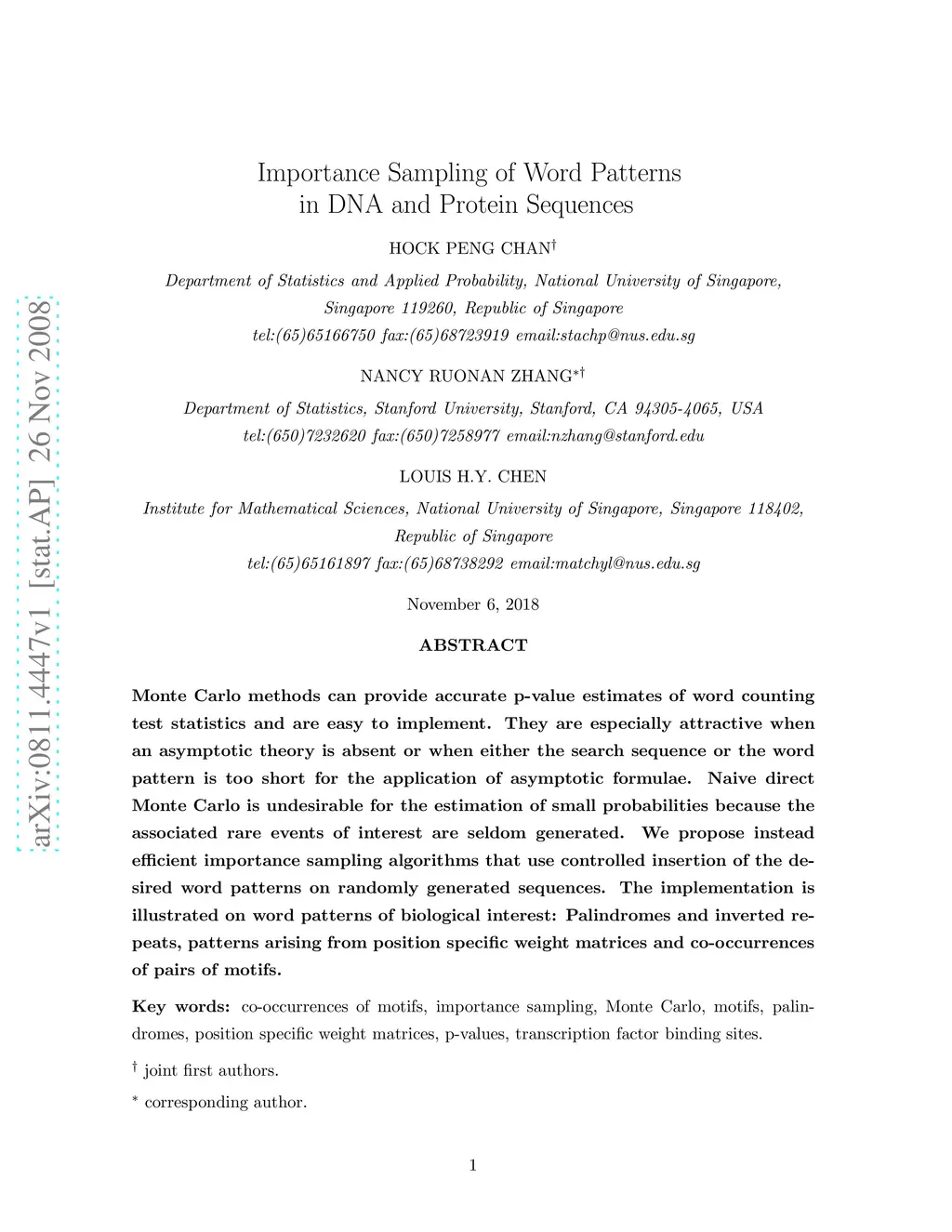 Importance Sampling of Word Patterns in DNA and Protein Sequences