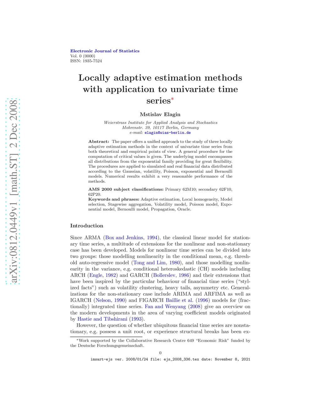 The paper offers a unified approach to the study of three locally adaptive estimation methods in the context of univariate time series from both theoretical and empirical points of view. A general procedure for the computation of critical values is given. The underlying model encompasses all distributions from the exponential family providing for great flexibility. The procedures are applied to simulated and real financial data distributed according to the Gaussian, volatility, Poisson, exponential and Bernoulli models. Numerical results exhibit a very reasonable performance of the methods.