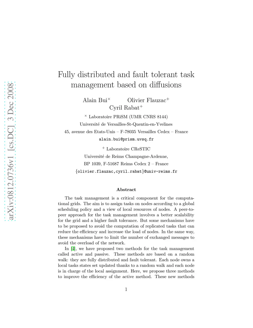 Fully distributed and fault tolerant task management based on diffusions