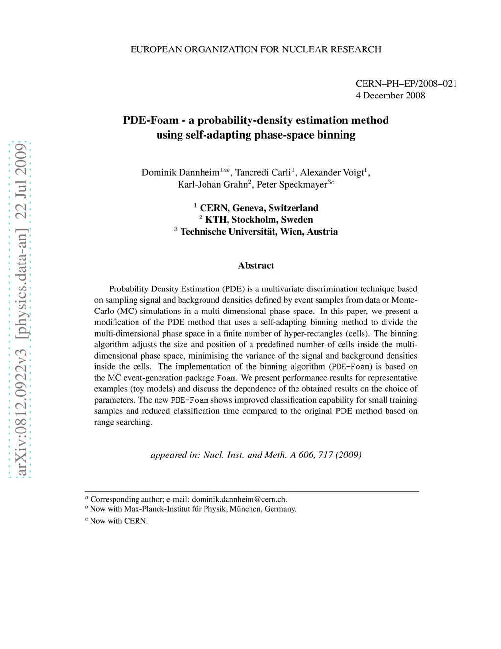 PDE-Foam - a probability-density estimation method using self-adapting