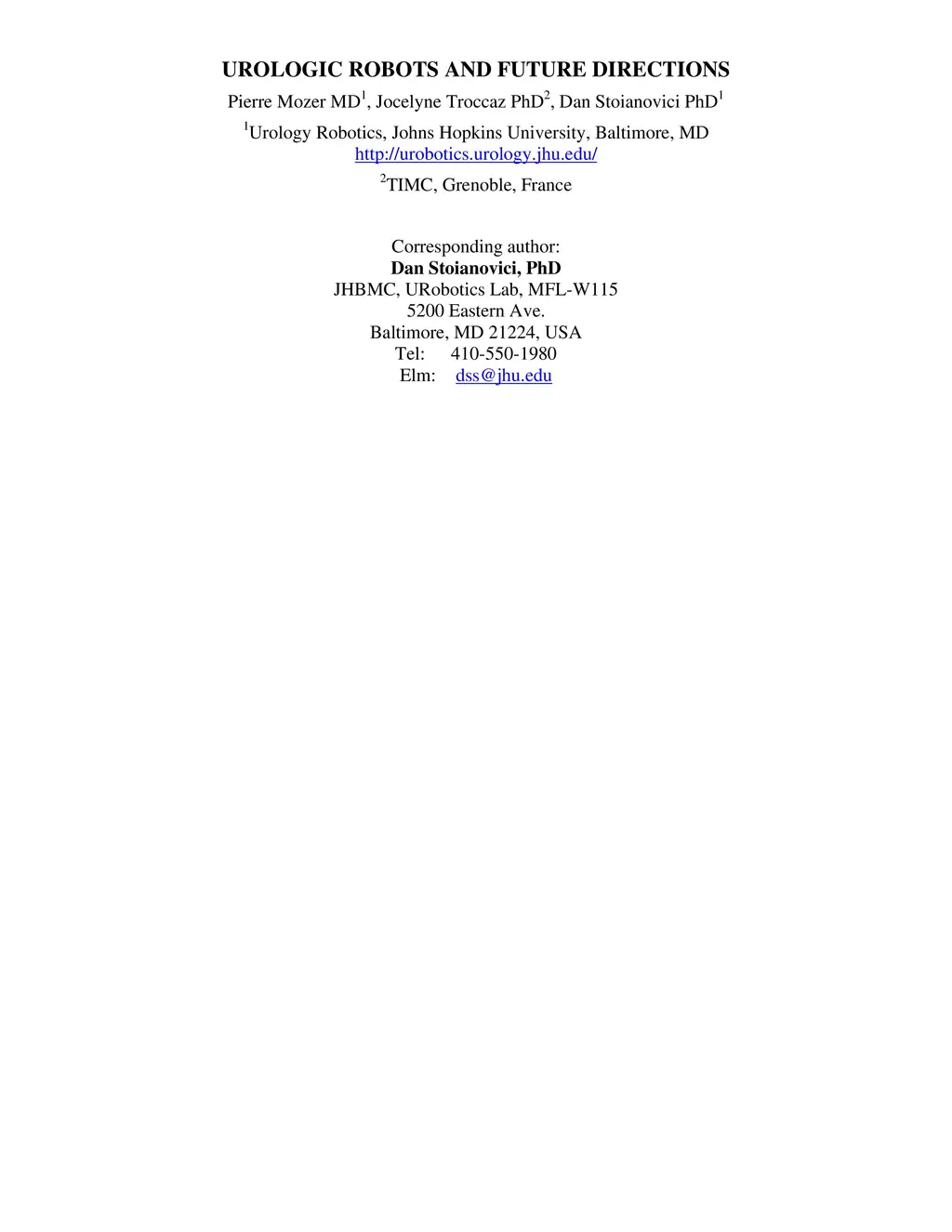 Urologic robots and future directions