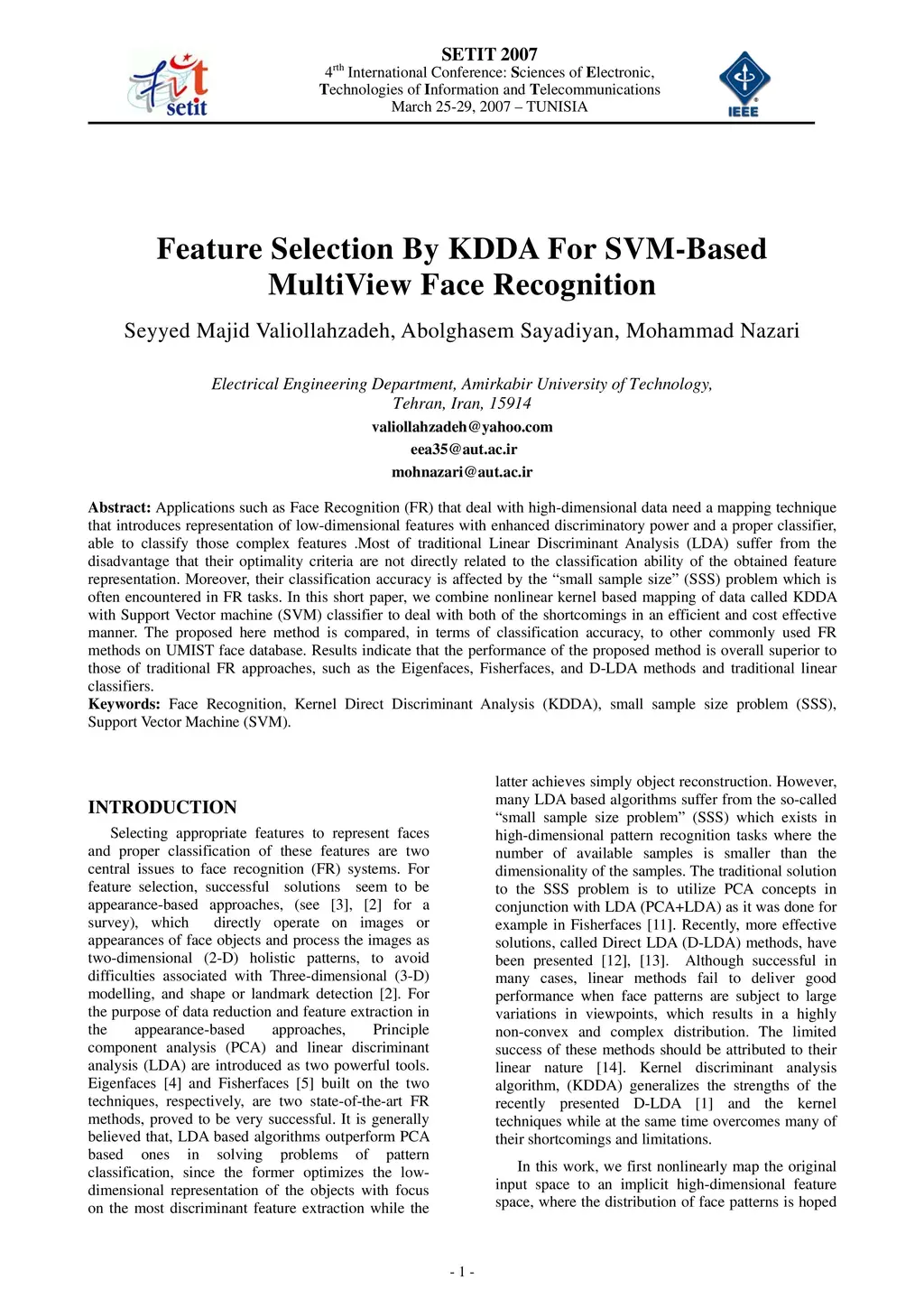 Feature Selection By KDDA For SVM-Based MultiView Face Recognition