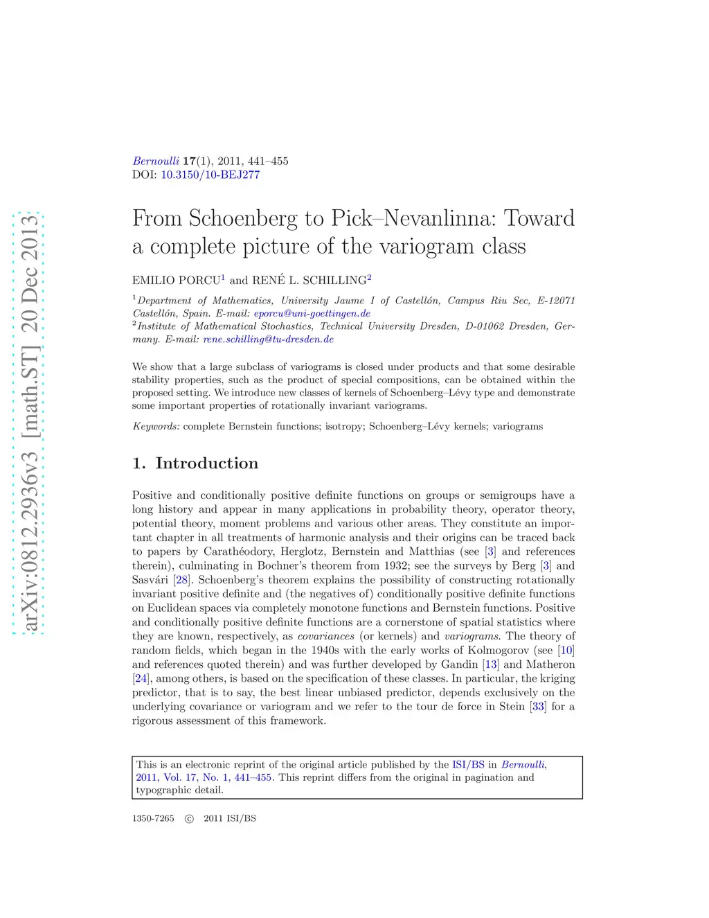 From Schoenberg to Pick-Nevanlinna: Toward a complete picture of the