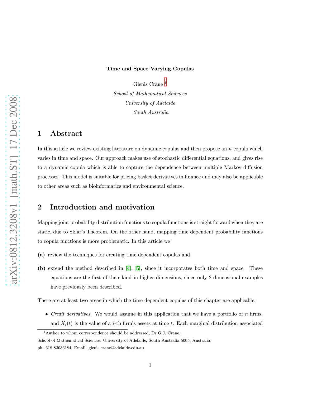 In this article we review existing literature on dynamic copulas and then propose an n-copula which varies in time and space. Our approach makes use of stochastic differential equations, and gives rise to a dynamic copula which is able to capture the dependence between multiple Markov diffusion processes. This model is suitable for pricing basket derivatives in finance and may also be applicable to other areas such as bioinformatics and environmental science.