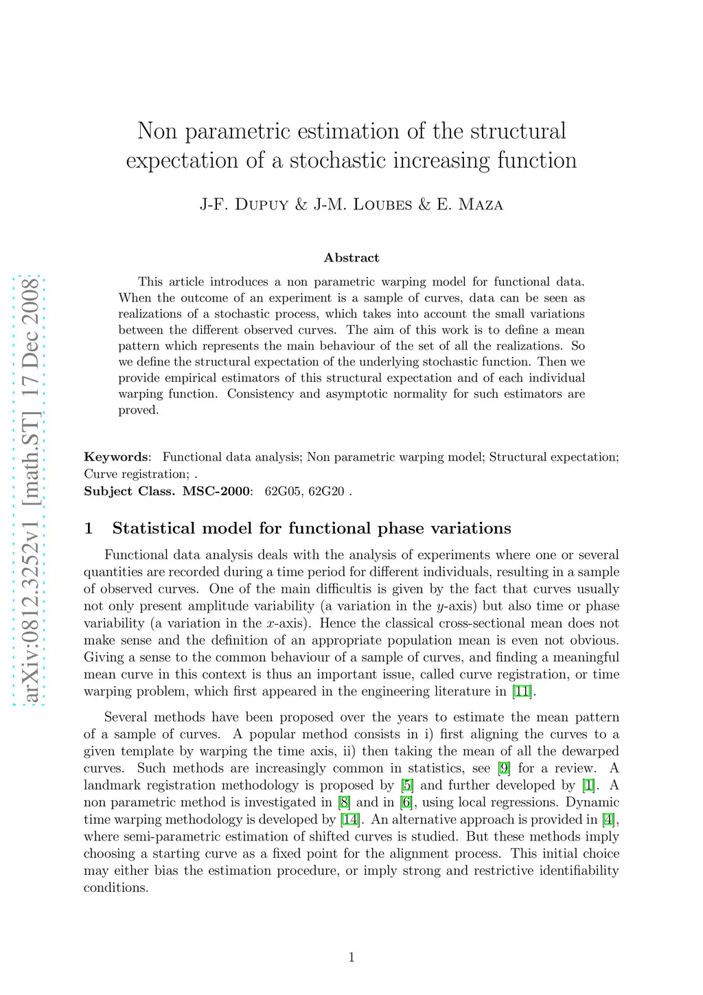 This article introduces a non parametric warping model for functional data. When the outcome of an experiment is a sample of curves, data can be seen as realizations of a stochastic process, which takes into account the small variations between the different observed curves. The aim of this work is to define a mean pattern which represents the main behaviour of the set of all the realizations. So we define the structural expectation of the underlying stochastic function. Then we provide empirical estimators of this structural expectation and of each individual warping function. Consistency and asymptotic normality for such estimators are proved.