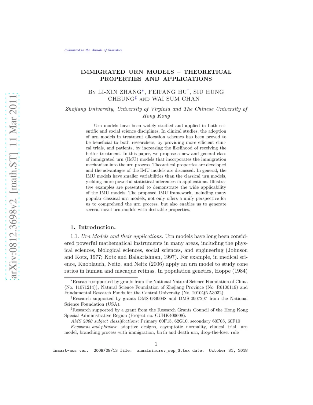 Urn models have been widely studied and applied in both scientific and social science disciplines. In clinical studies, the adoption of urn models in treatment allocation schemes has been proved to be beneficial to both researchers, by providing more efficient clinical trials, and patients, by increasing the likelihood of receiving the better treatment. In this paper, we propose a new and general class of immigrated urn (IMU) models that incorporates the immigration mechanism into the urn process. Theoretical properties are developed and the advantages of the IMU models are discussed. In general, the IMU models have smaller variabilities than the classical urn models, yielding more powerful statistical inferences in applications. Illustrative examples are presented to demonstrate the wide applicability of the IMU models. The proposed IMU framework, including many popular classical urn models, not only offers a unify perspective for us to comprehend the urn process, but also enables us to generate several novel urn models with desirable properties.