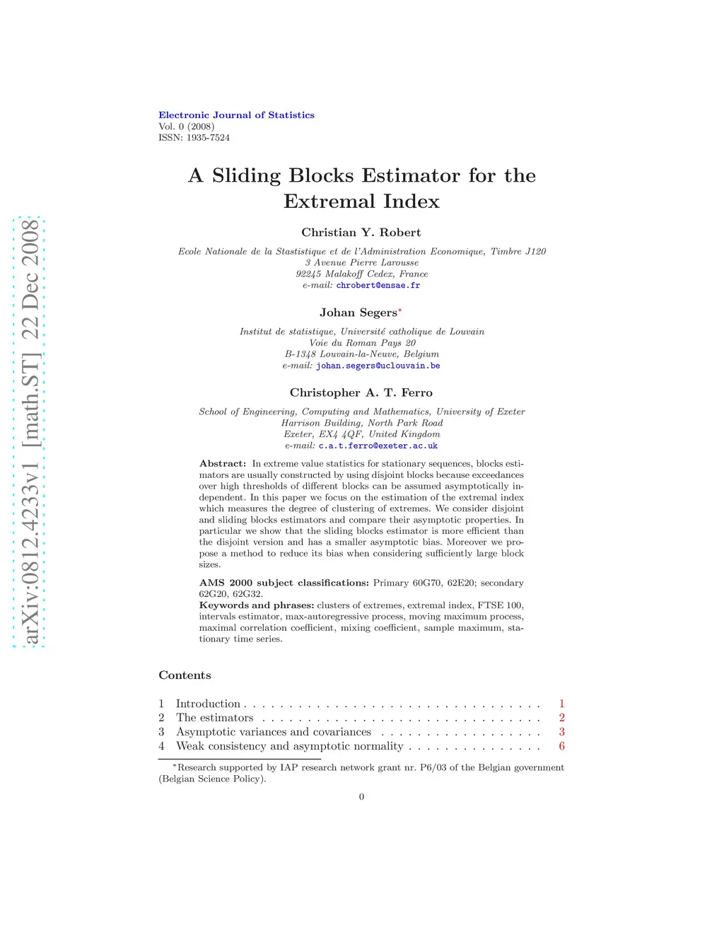 In extreme value statistics for stationary sequences, blocks estimators are usually constructed by using disjoint blocks because exceedances over high thresholds of different blocks can be assumed asymptotically independent. In this paper we focus on the estimation of the extremal index which measures the degree of clustering of extremes. We consider disjoint and sliding blocks estimators and compare their asymptotic properties. In particular we show that the sliding blocks estimator is more efficient than the disjoint version and has a smaller asymptotic bias. Moreover we propose a method to reduce its bias when considering sufficiently large block sizes.