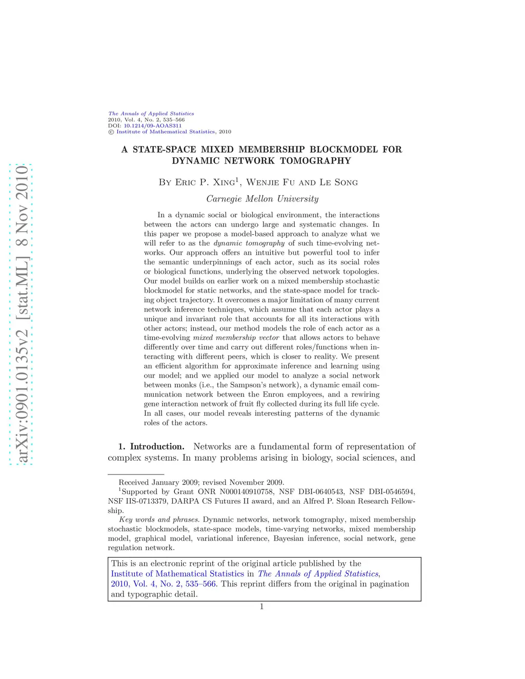 In a dynamic social or biological environment, the interactions between the actors can undergo large and systematic changes. In this paper we propose a model-based approach to analyze what we will refer to as the dynamic tomography of such time-evolving networks. Our approach offers an intuitive but powerful tool to infer the semantic underpinnings of each actor, such as its social roles or biological functions, underlying the observed network topologies. Our model builds on earlier work on a mixed membership stochastic blockmodel for static networks, and the state-space model for tracking object trajectory. It overcomes a major limitation of many current network inference techniques, which assume that each actor plays a unique and invariant role that accounts for all its interactions with other actors; instead, our method models the role of each actor as a time-evolving mixed membership vector that allows actors to behave differently over time and carry out different roles/functions when interacting with different peers, which is closer to reality. We present an efficient algorithm for approximate inference and learning using our model; and we applied our model to analyze a social network between monks (i.e., the Sampson's network), a dynamic email communication network between the Enron employees, and a rewiring gene interaction network of fruit fly collected during its full life cycle. In all cases, our model reveals interesting patterns of the dynamic roles of the actors.