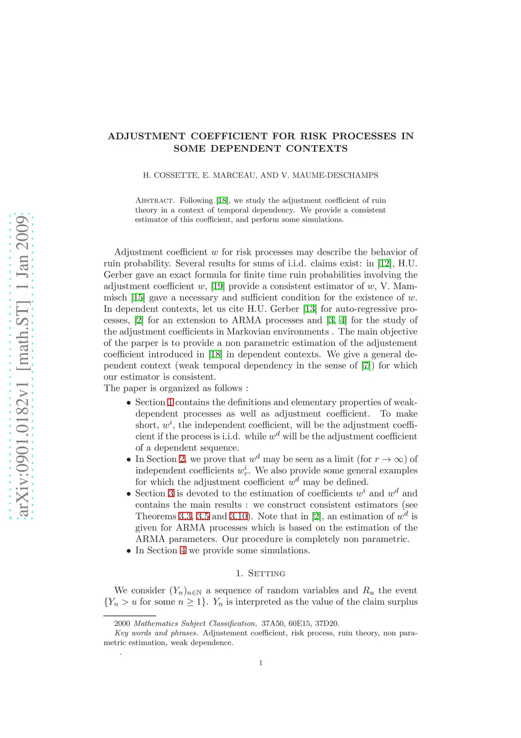 Following an article by Muller and Pflug, we study the adjustment coefficient of ruin theory in a context of temporal dependency. We provide a consistent estimator of this coefficient, and perform some simulations.
