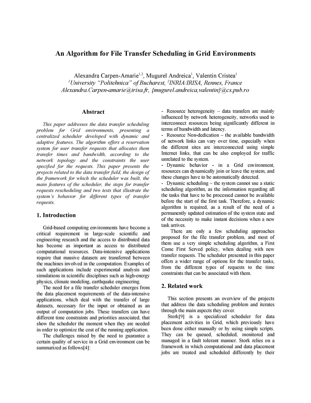 An Algorithm for File Transfer Scheduling in Grid Environments
