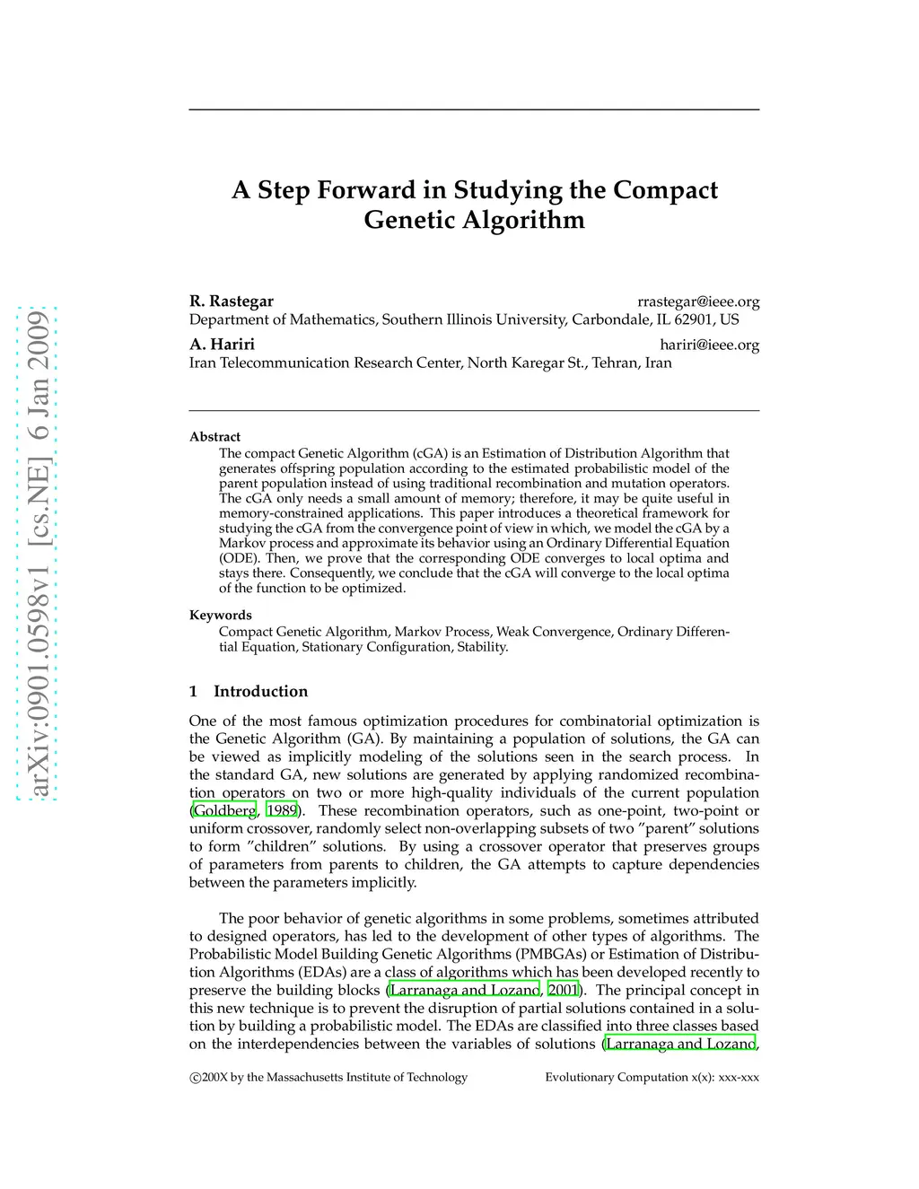 A Step Forward in Studying the Compact Genetic Algorithm