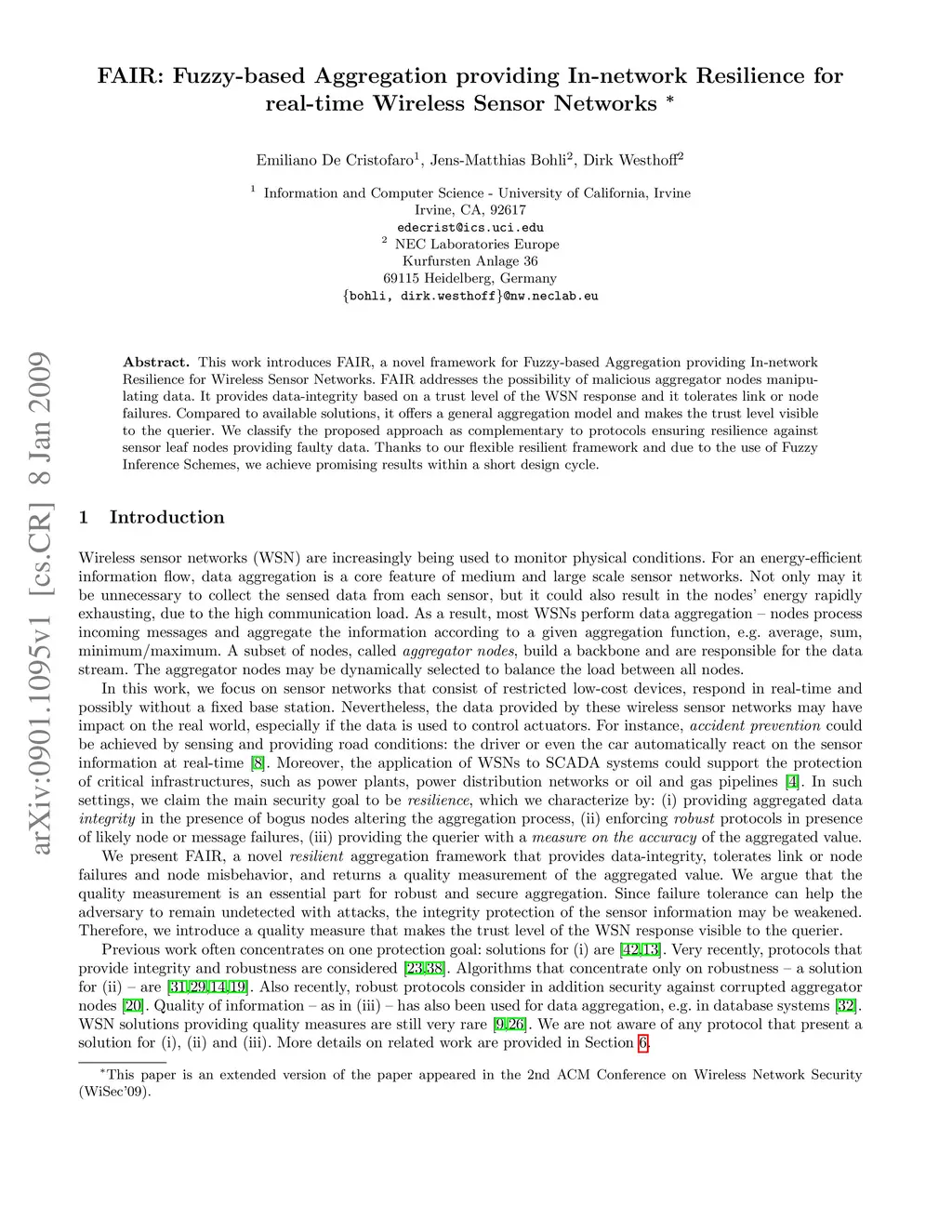 FAIR: Fuzzy-based Aggregation providing In-network Resilience for