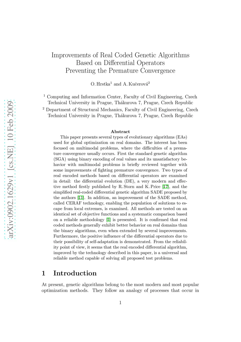 This paper presents several types of evolutionary algorithms (EAs) used for global optimization on real domains. The interest has been focused on multimodal problems, where the difficulties of a premature convergence usually occurs. First the standard genetic algorithm (SGA) using binary encoding of real values and its unsatisfactory behavior with multimodal problems is briefly reviewed together with some improvements of fighting premature convergence. Two types of real encoded methods based on differential operators are examined in detail: the differential evolution (DE), a very modern and effective method firstly published by R. Storn and K. Price, and the simplified real-coded differential genetic algorithm SADE proposed by the authors. In addition, an improvement of the SADE method, called CERAF technology, enabling the population of solutions to escape from local extremes, is examined. All methods are tested on an identical set of objective functions and a systematic comparison based on a reliable methodology is presented. It is confirmed that real coded methods generally exhibit better behavior on real domains than the binary algorithms, even when extended by several improvements. Furthermore, the positive influence of the differential operators due to their possibility of self-adaptation is demonstrated. From the reliability point of view, it seems that the real encoded differential algorithm, improved by the technology described in this paper, is a universal and reliable method capable of solving all proposed test problems.
