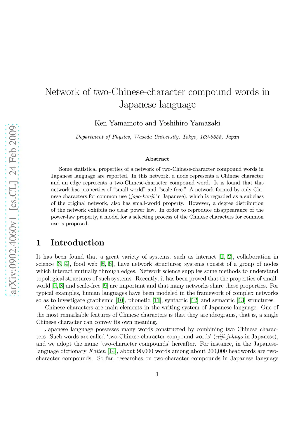 Network of two-Chinese-character compound words in Japanese language