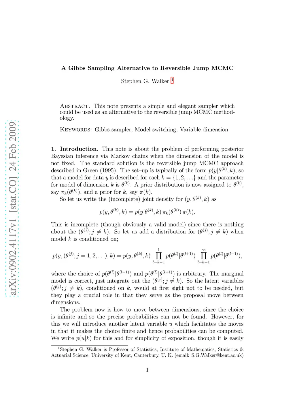 This note presents a simple and elegant sampler which could be used as an alternative to the reversible jump MCMC methodology.