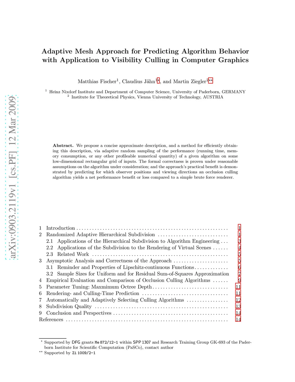 Adaptive Mesh Approach for Predicting Algorithm Behavior with