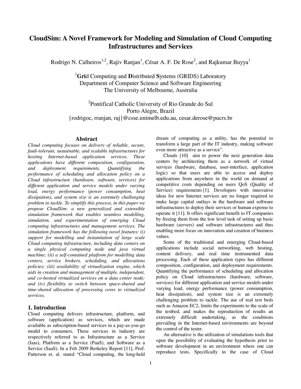 CloudSim: A Novel Framework for Modeling and Simulation of Cloud