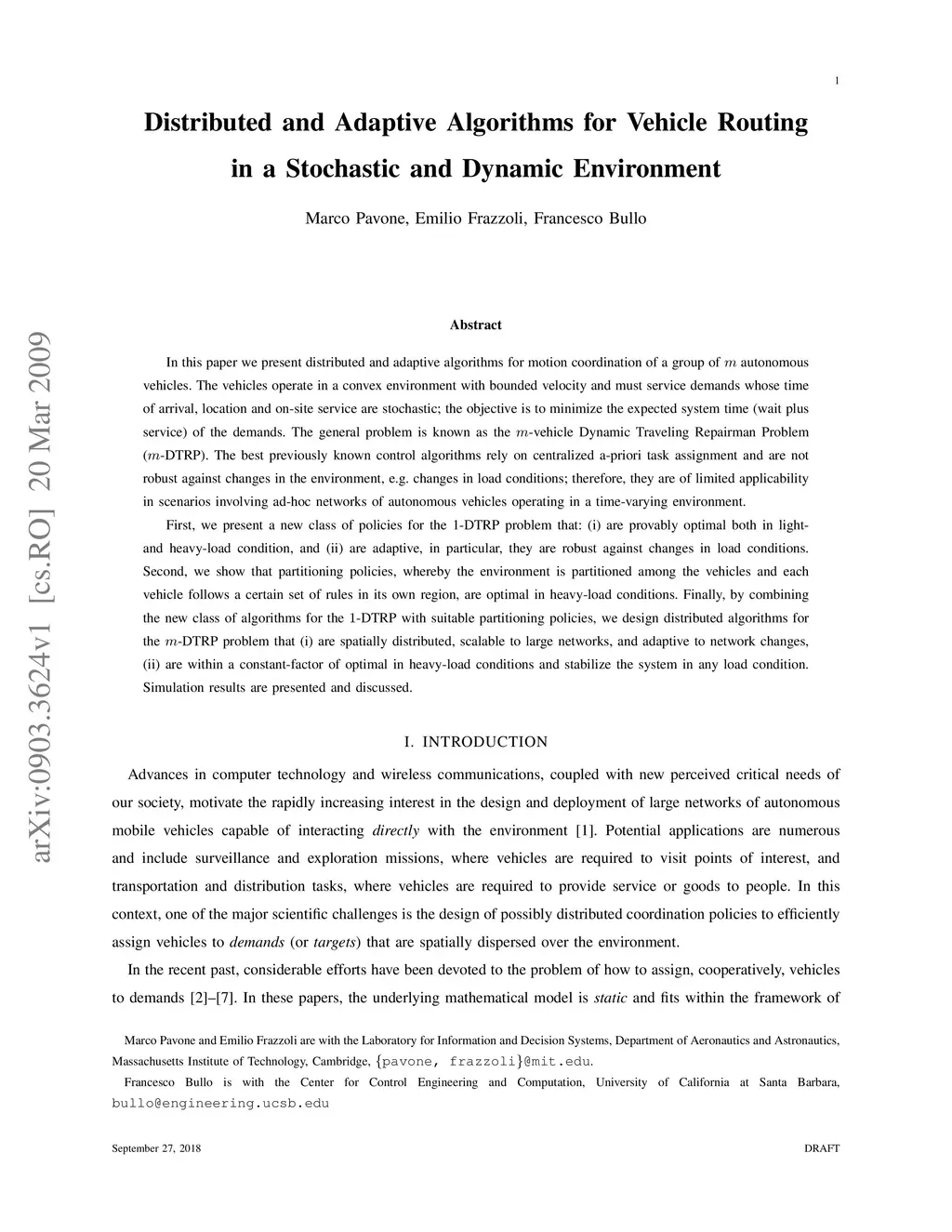Distributed and Adaptive Algorithms for Vehicle Routing in a Stochastic