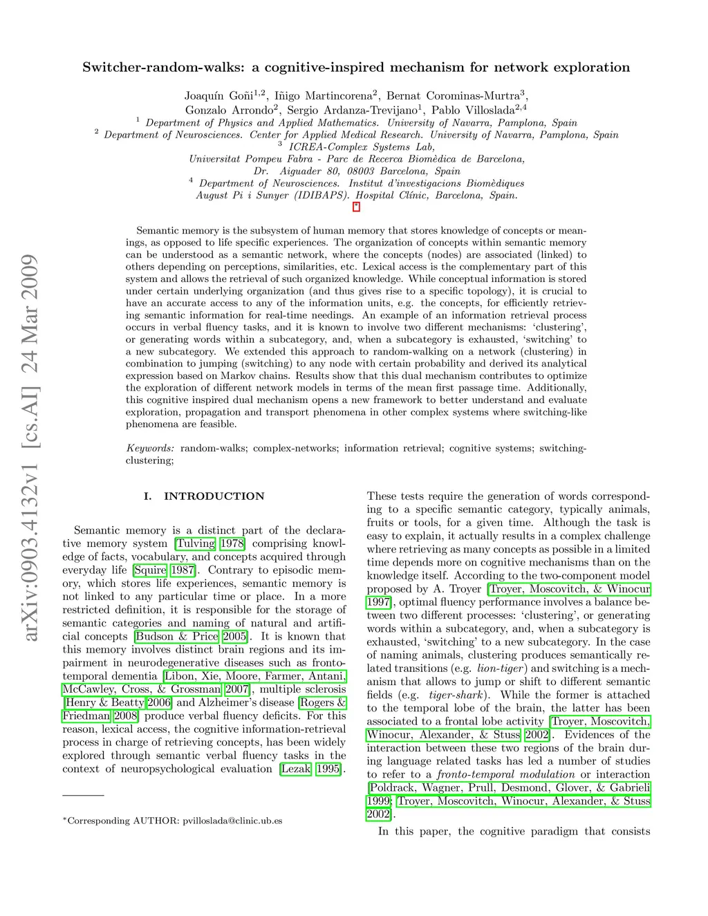 Switcher-random-walks: a cognitive-inspired mechanism for network