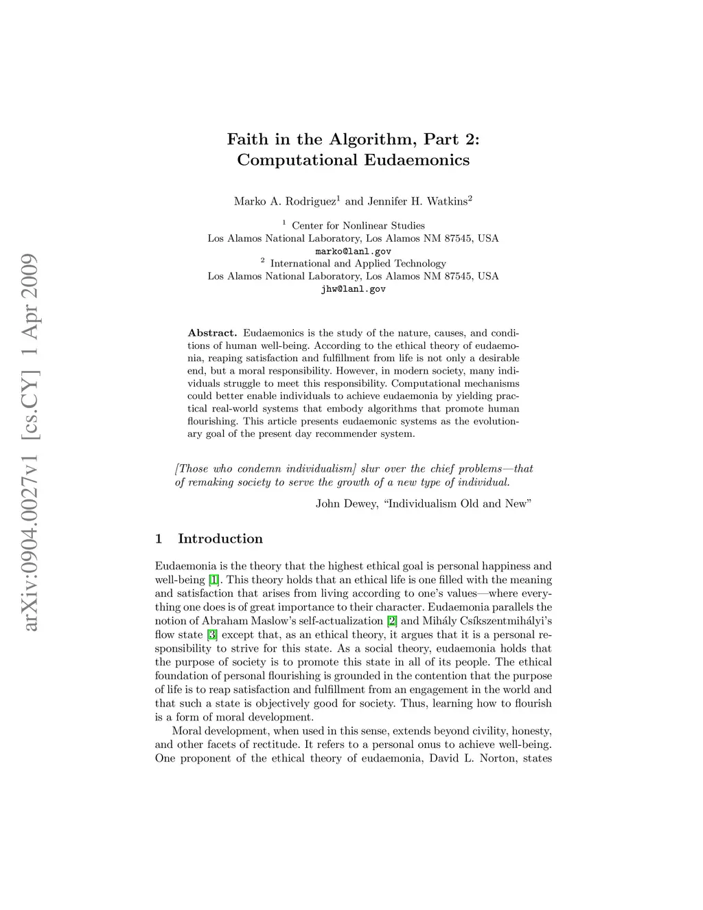 Faith in the Algorithm, Part 2: Computational Eudaemonics
